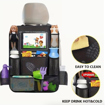 Car Seat Storage Bag & Seat Back Organizer – Multifunctional Hanging Storage with iPad Holder, Rear Seat Anti-Kick Protector, Durable & Easy to Install