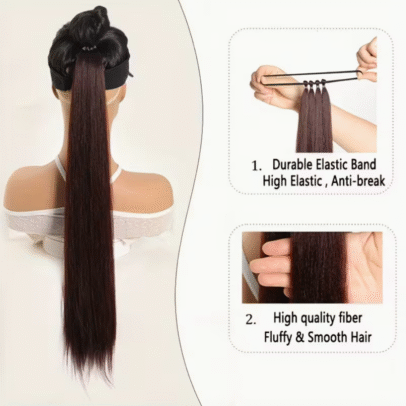 71.12cm Long Straight Synthetic Ponytail Extension Elegant Black • Soft Natural Fiber • Elastic Band Attachment • Multi-Racial Fit • Easy, Stylish Hairpiece for Women
