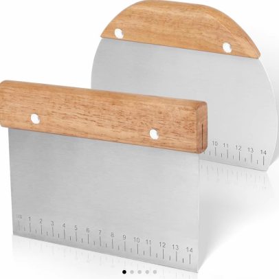 Dough Scraper with Scale 15CM Food Grade Stainless Steel Dough Cutter with Wooden Handle, Bench Scraper, Pastry Scraper Kitchen Scraper for Pizza, Bread, Pastry, Cake Dough Baking Shaping