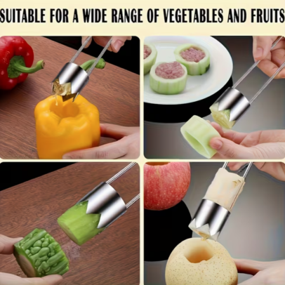 Stainless Steel Fruit & Vegetable Core Remover – Red Bell Pepper Seed Remover, Universal Kitchen Gadget