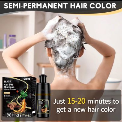 Black Hair Dye Shampoo for Gray Hair – Semi-Permanent Hair Color for Women & Men (350ml x 2)