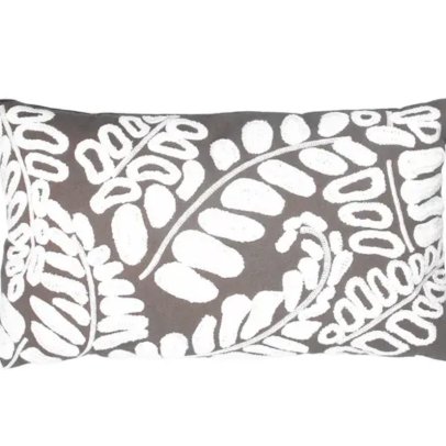 Gisela Graham 2 x Grey & White Crewel Work Rect. Cushion w Pad