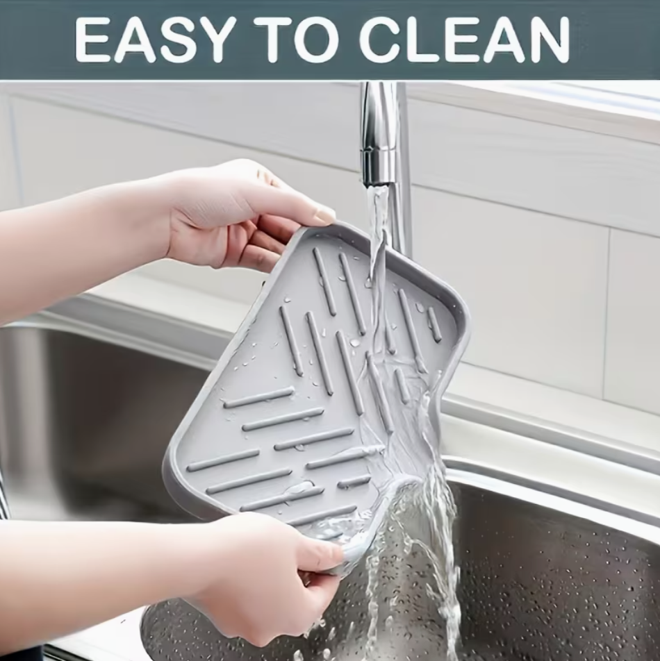 Keep your kitchen and bathroom neat, dry, and organized with this Silicone Kitchen Sink Tray with Drain Holes. Designed as a practical countertop cleaning mat, it provides a dedicated space for storing brushes, sponges, and soap while allowing water to drain quickly, helping prevent mess, mildew, and water stains.