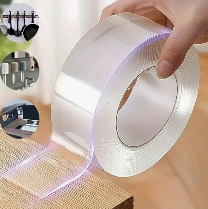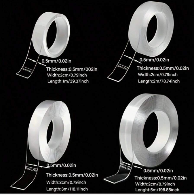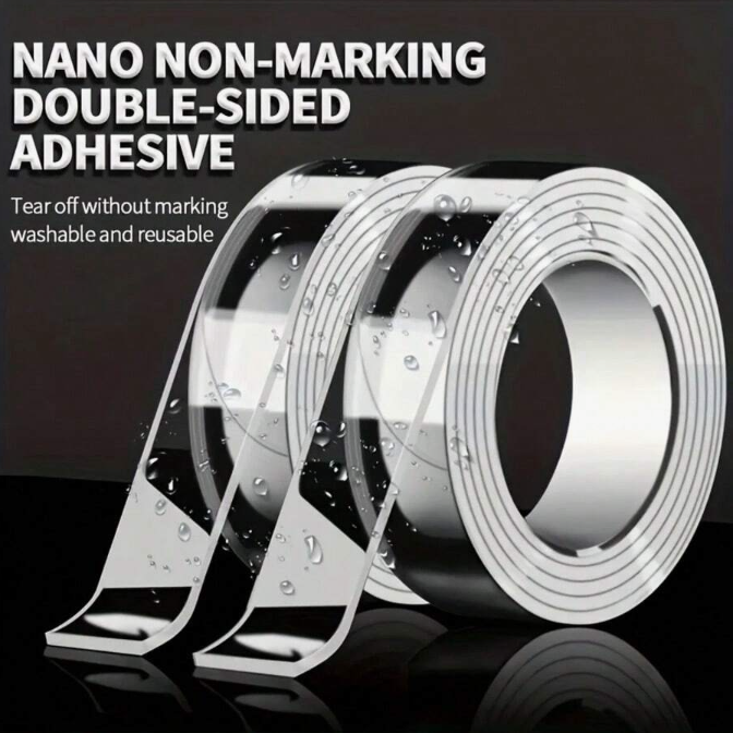 Experience next-level sticking power with this 1 Roll of Heavy Duty Double-Sided Nano Tape – the ultimate solution for secure, damage-free mounting at home, in the office, or in your car. This transparent, reusable adhesive tape is made from high-quality nano gel material, offering strong grip while leaving no residue when removed.