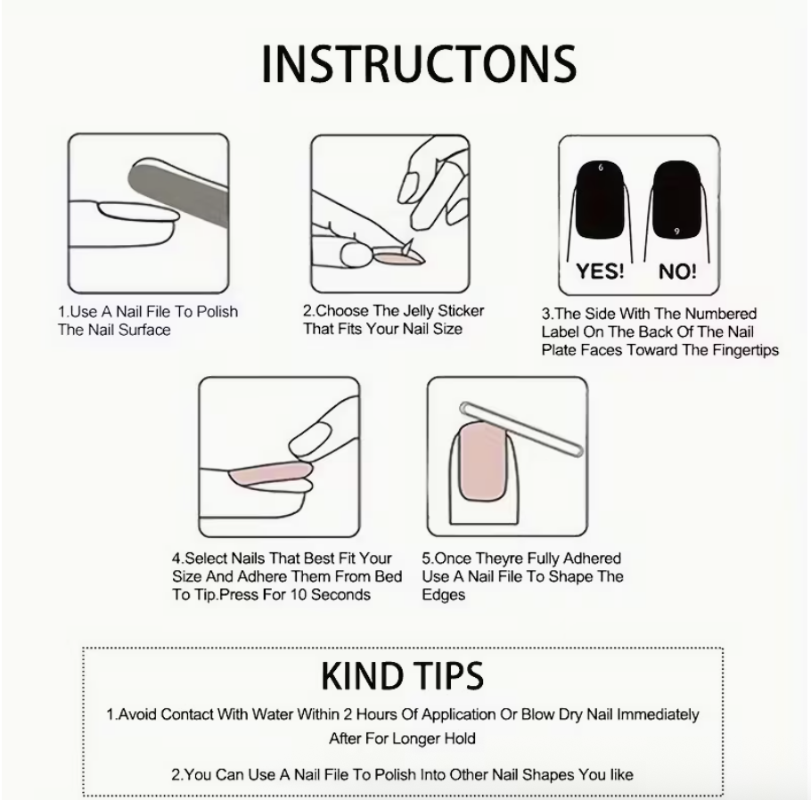 Quick, simple application suitable for beginners. Stick on in minutes and enjoy glamorous nails instantly.