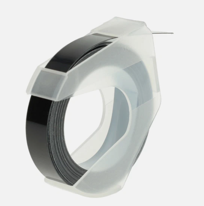 Our high-quality, self-adhesive embossing label and writing tape cassette fits perfectly in your label printer, embossing label maker or label writer. This tape provides an easy way to print and label a wide variety of objects and surfaces.