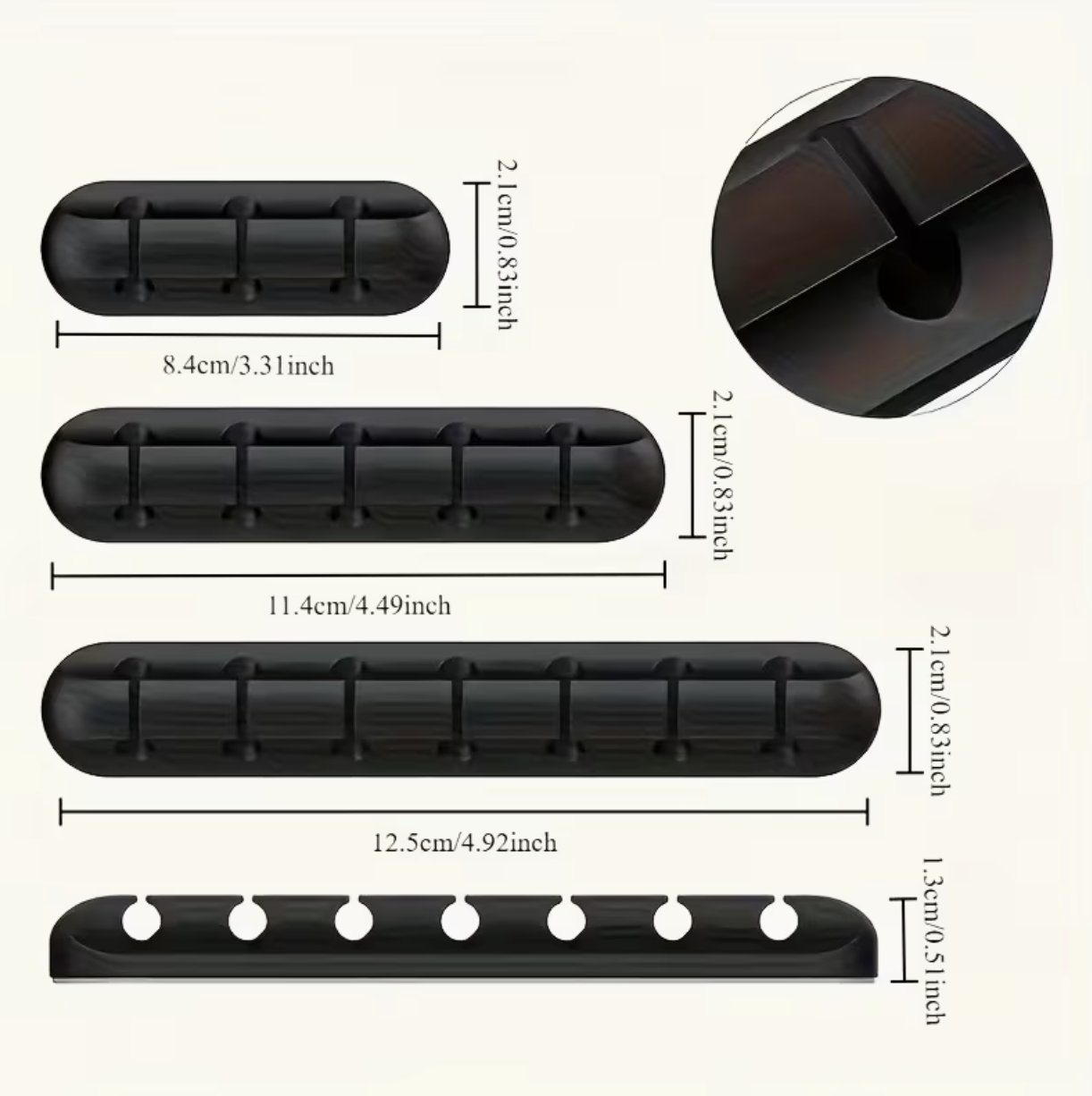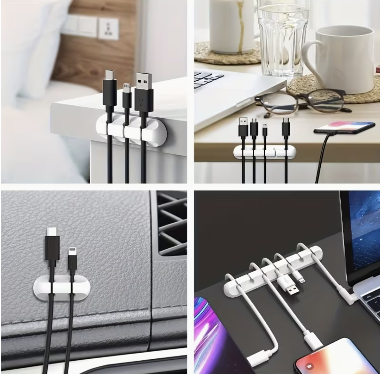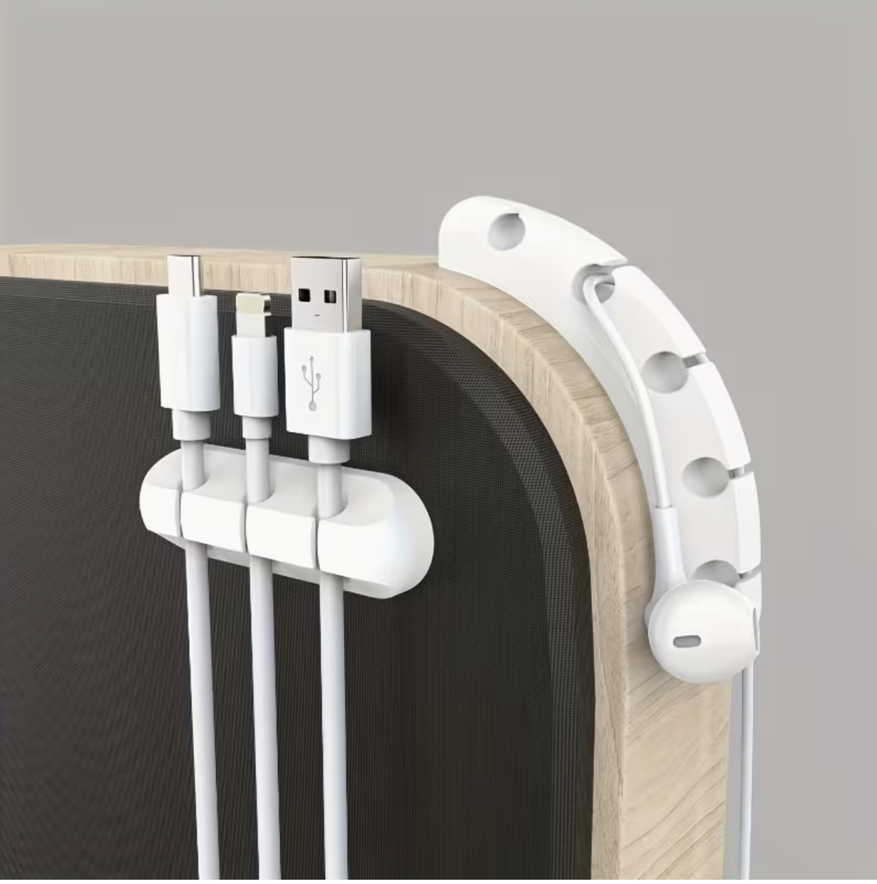 5-Hole Design with Clips – Holds multiple cables securely and prevents tangling