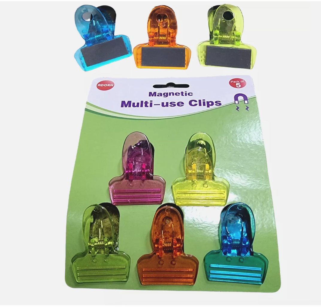 5 X Neon Magnetic Multi Use Clips Fridge Magnets Large Bulldog Clips Notes Memos