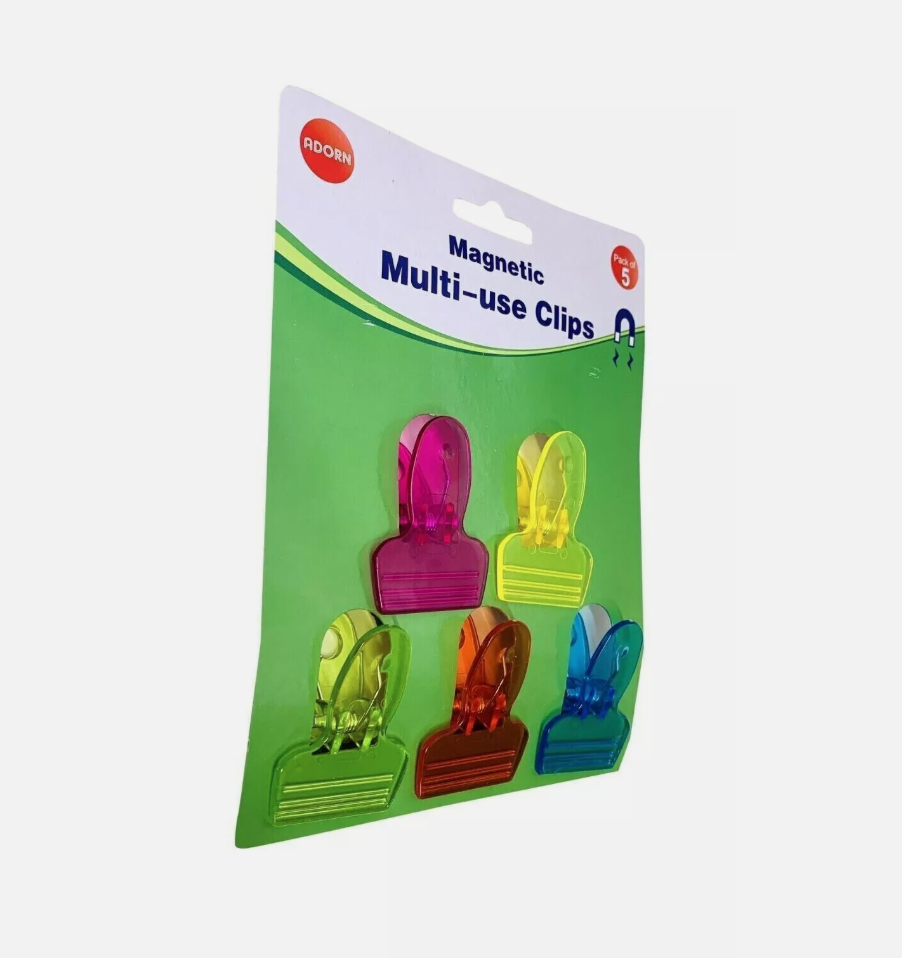 NEW Pack Of 5 Neon Magnetic Multi Use Clips Magnets For Notes Memos And Many More Uses
