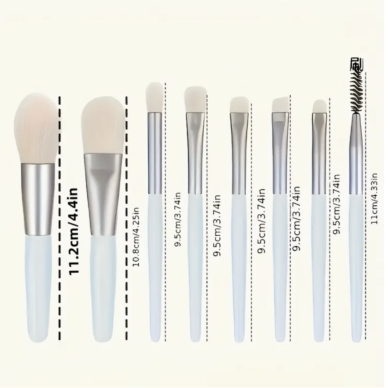 Whether you’re preparing for a busy day or refreshing your makeup on the go, this mini 8pcs brush set gives you the perfect tools to blend, define, and enhance your beauty with ease.