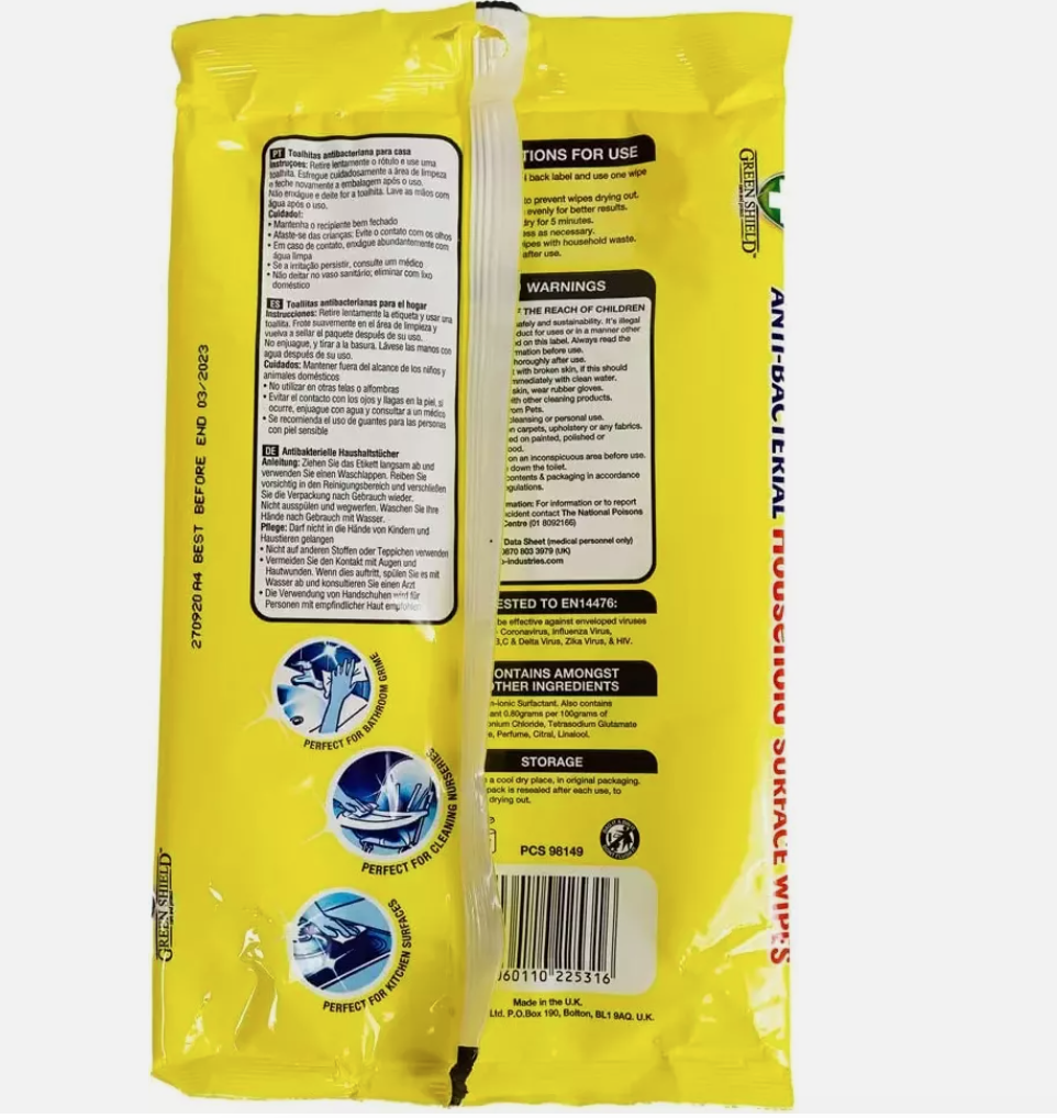 Anti Bacterial Household Surface Wipes 250 XL Wipes