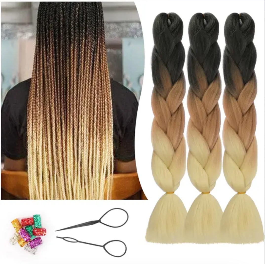 Add a bold pop of color and volume to your protective styles with the 24-inch Ombre Braiding Hair Extensions. Made from high-quality synthetic fiber, these jumbo braids are perfect for a wide variety of styles including twist, box braids, cornrows, crochet braids, and more.