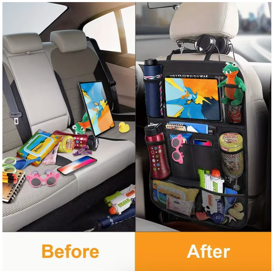Keep your car neat, organized, and protected with this Car Seat Storage Bag & Seat Back Organizer, designed to maximize space and convenience for both front and rear passengers. Perfect for families, daily commuters, and long road trips, this multifunctional organizer combines storage, protection, and entertainment in one smart solution.