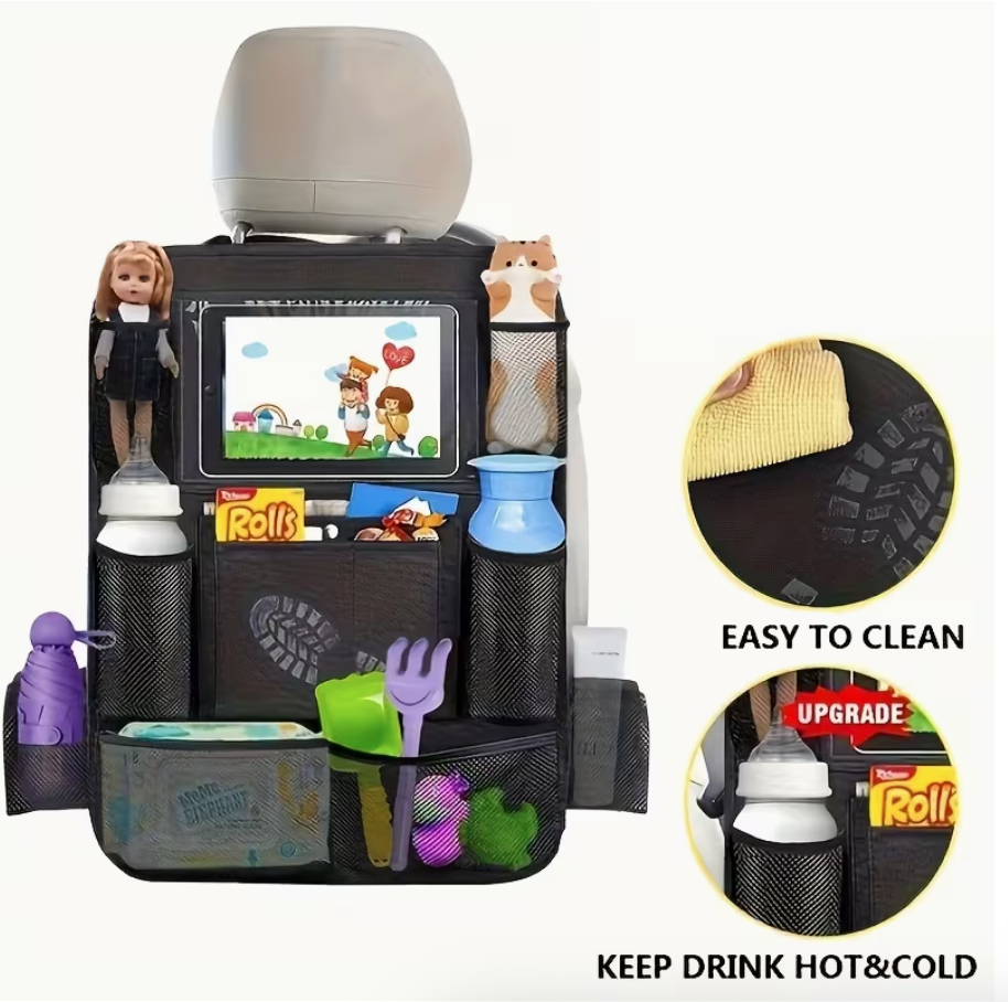 Multifunctional Design: Combines seat back storage, tablet holder, and seat protector