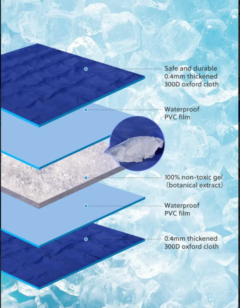 Self-Cooling Technology: Utilizes pressure-activated non-toxic gel that absorbs your pet’s body heat, providing a cooling effect without the need for water, refrigeration, or electricity.