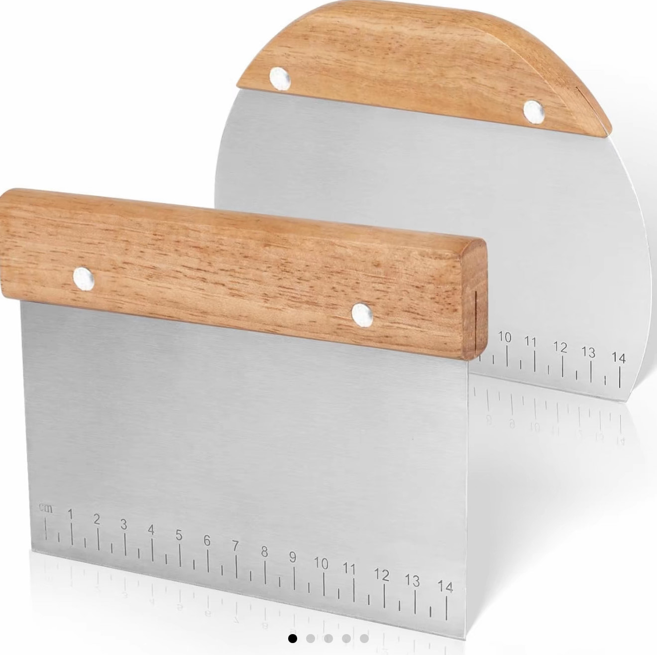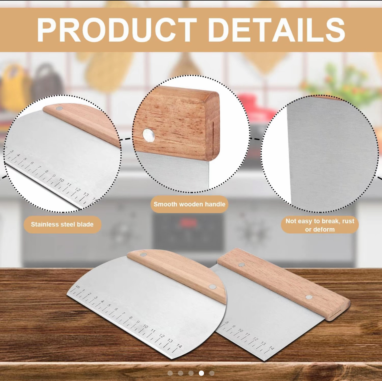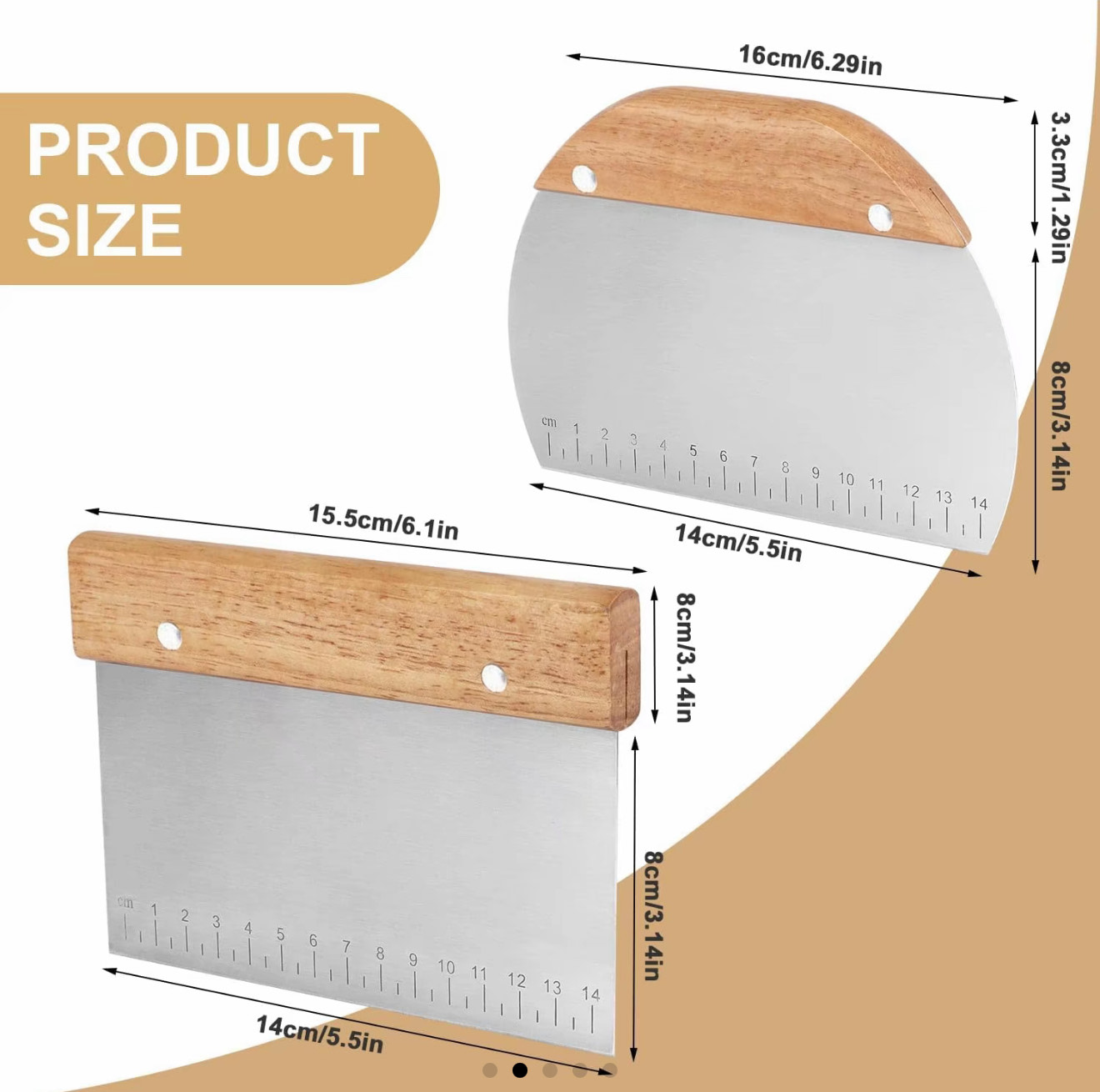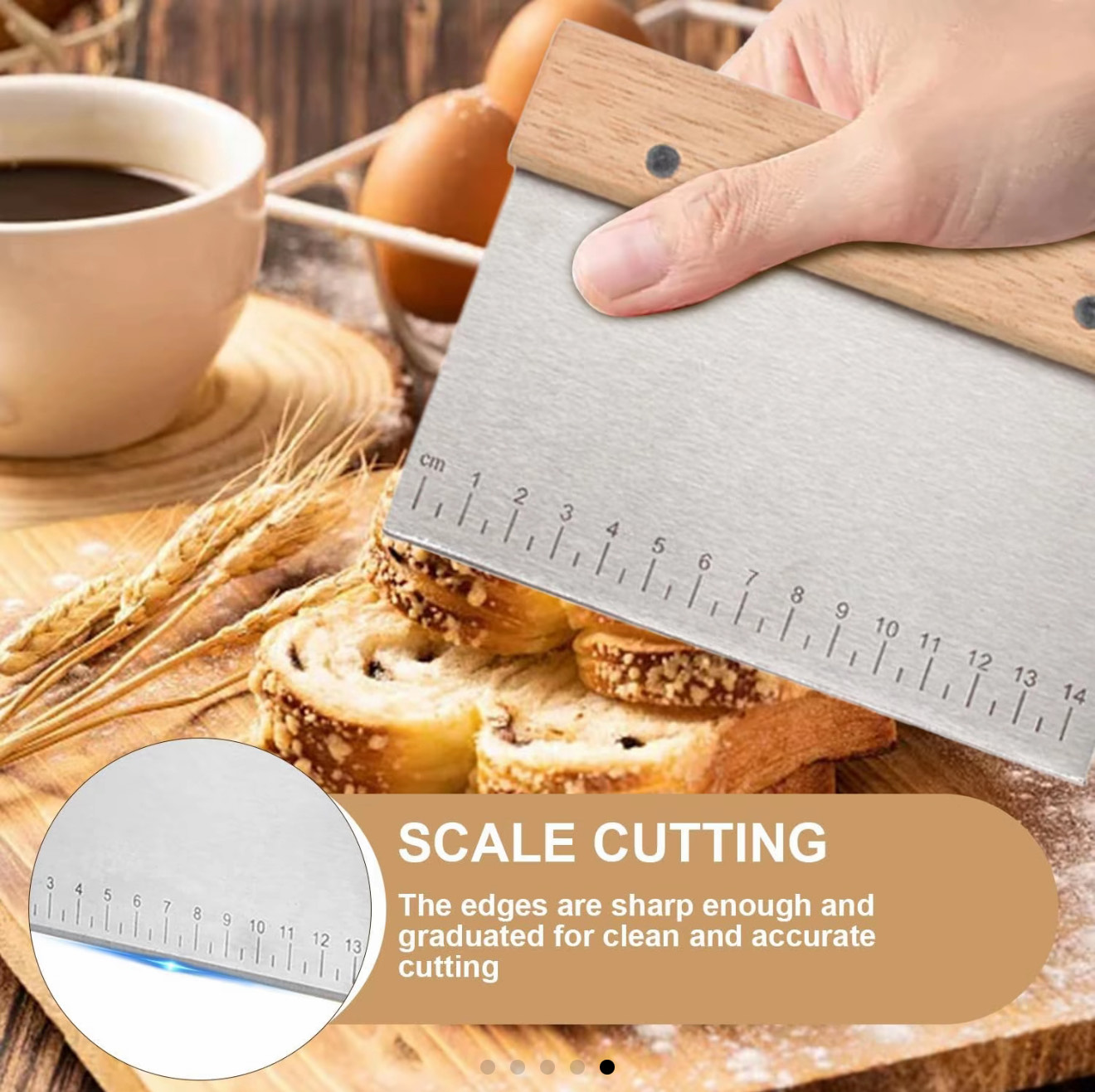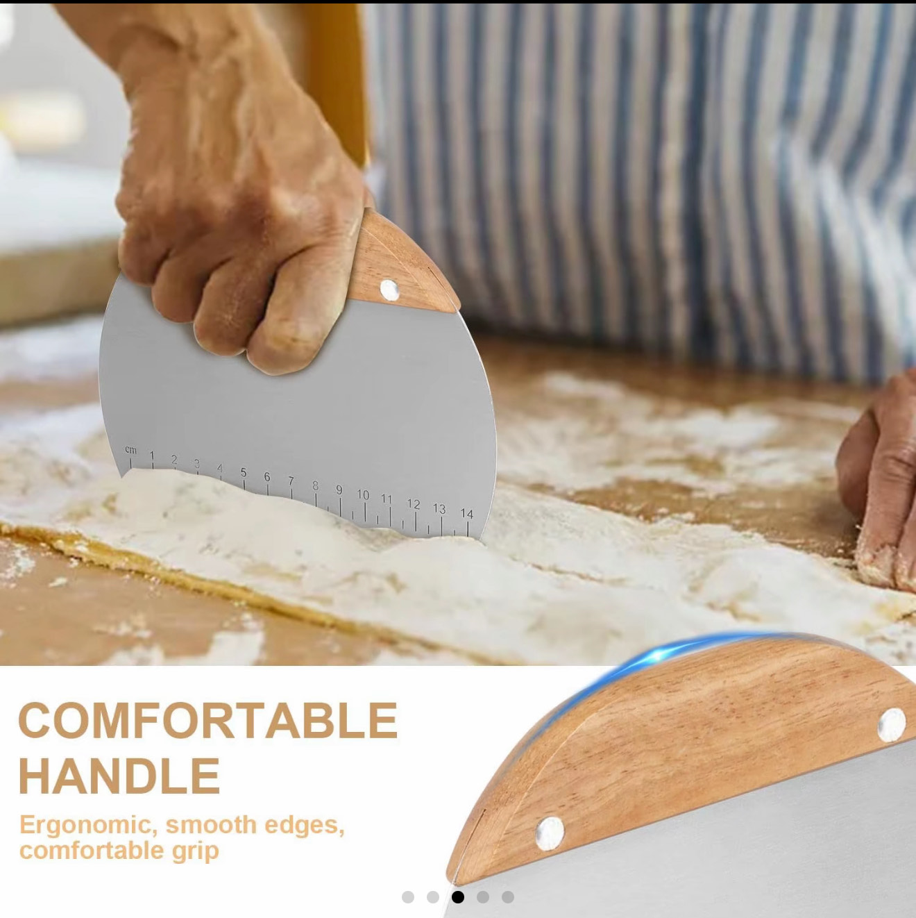 Dough Scraper with Scale 15CM Food Grade Stainless Steel Dough Cutter with Wooden Handle, Bench Scraper, Pastry Scraper Kitchen Scraper for Pizza, Bread, Pastry, Cake Dough Baking Shaping