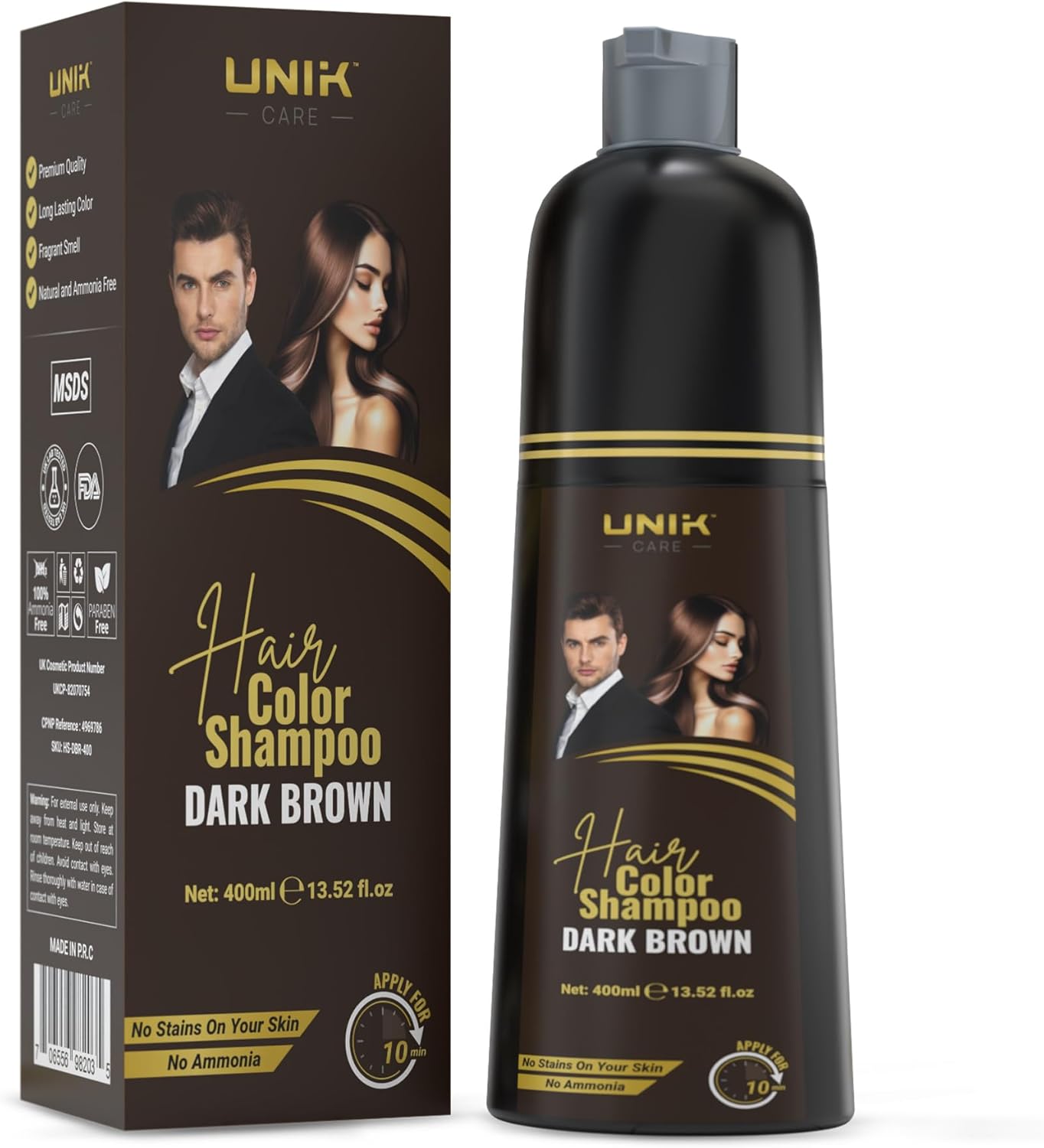 - [Gentle & Safe for Regular Use] No ammonia hair dye, parabens, or harsh chemicals, our anti-grey hair shampoo is gentle on your scalp, beard, and hair. Safe for repeated applications, this dark brown hair dye shampoo lets you maintain a vibrant color without dryness or damage. Perfect for frequent touch-ups!