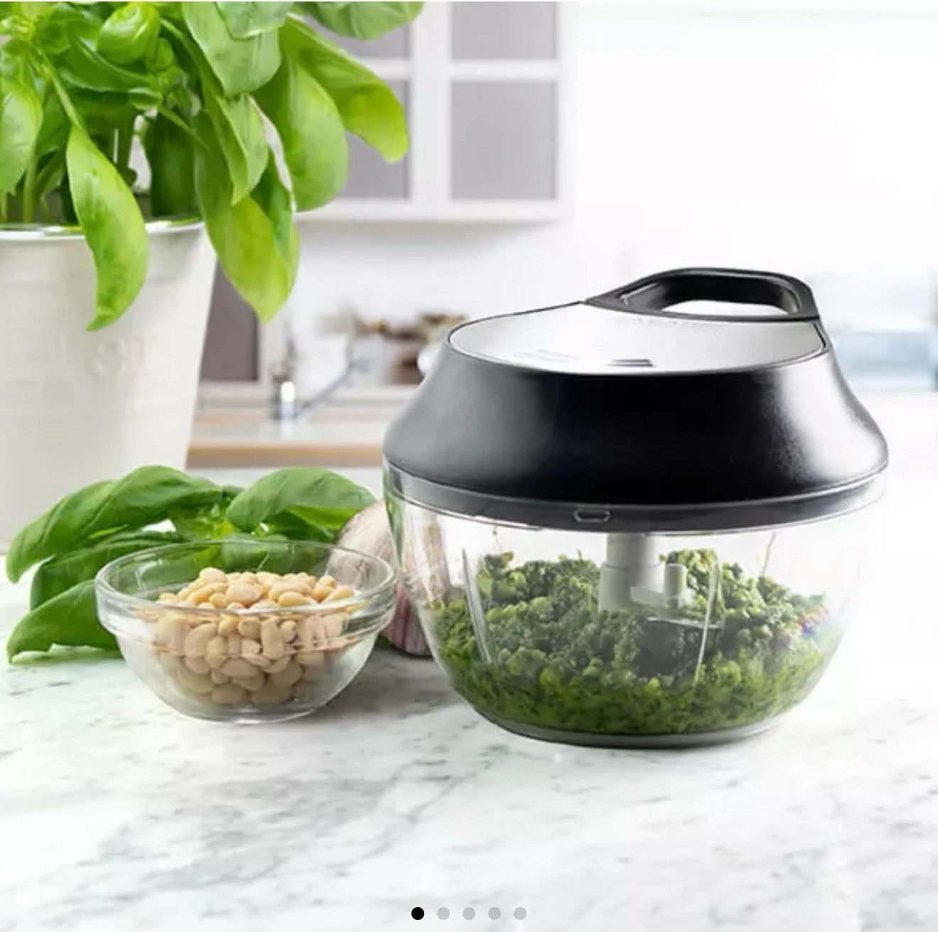 The strong plastic bowl is perfect for making salads, as it can hold a large amount of ingredients and can be easily emptied and washed The chopper is also easy to use, as it does not require any additional equipment or cords. Simply place the ingredients in the chopper and press down on the lid to start chopping.