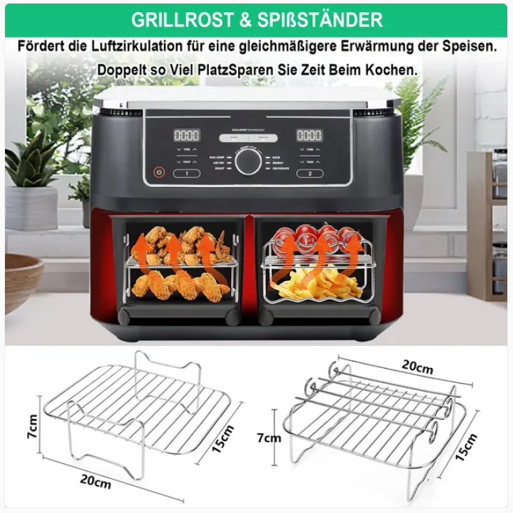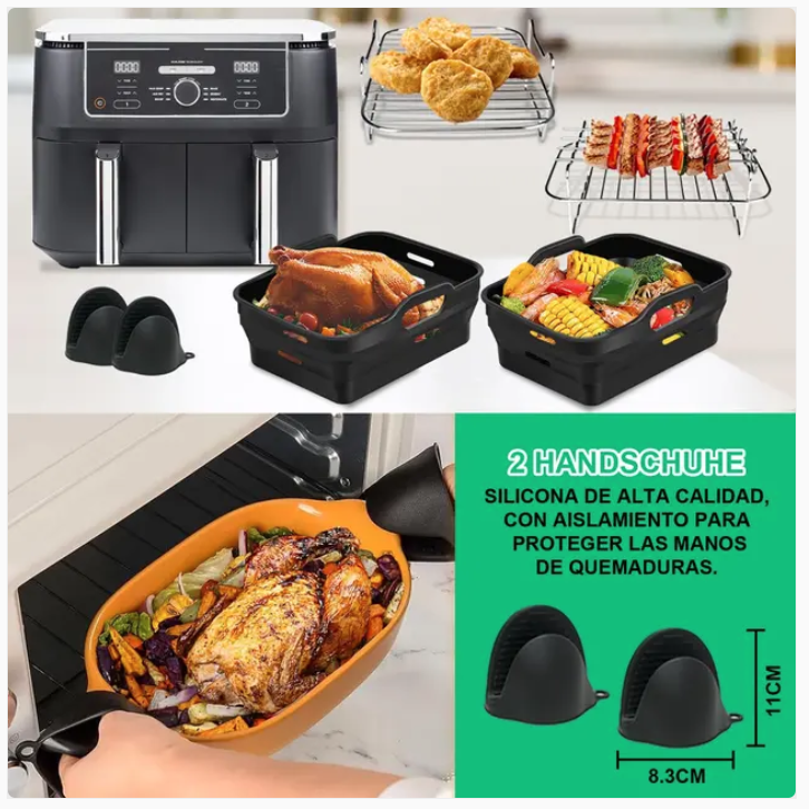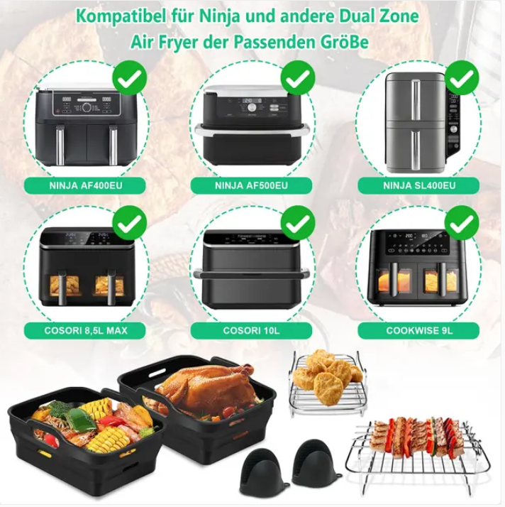 Perfect Fit:Â Tailored for large dual-zone air fryers with a capacity of 9L to 10.4L.