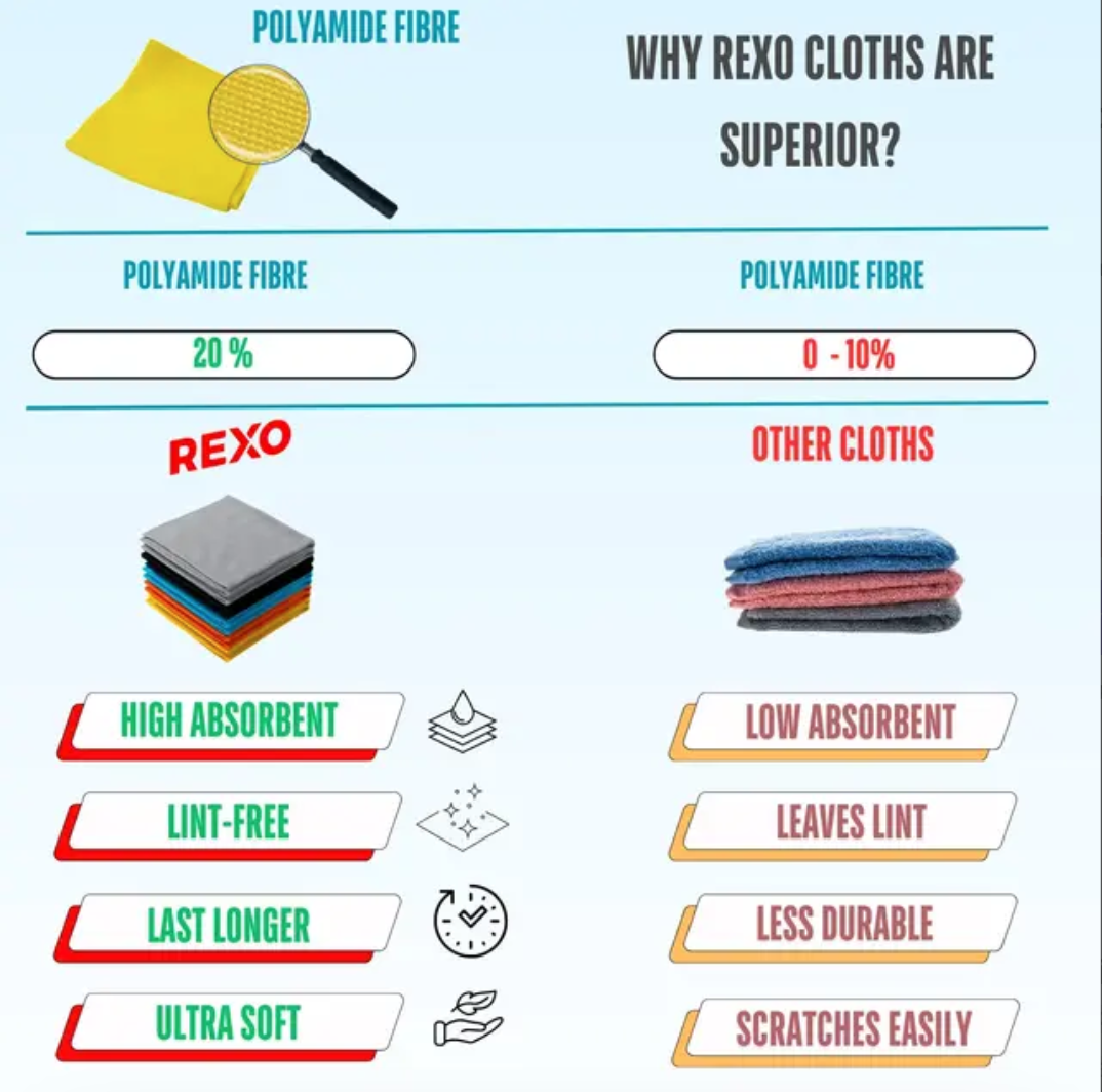 Upgrade your cleaning experience with the REXO® Microfibre Cleaning Cloths, designed for versatility, durability, and efficiency. These ultra-soft, super-absorbent cloths are perfect for both dry and wet cleaning, ensuring streak-free shine on multiple surfaces.