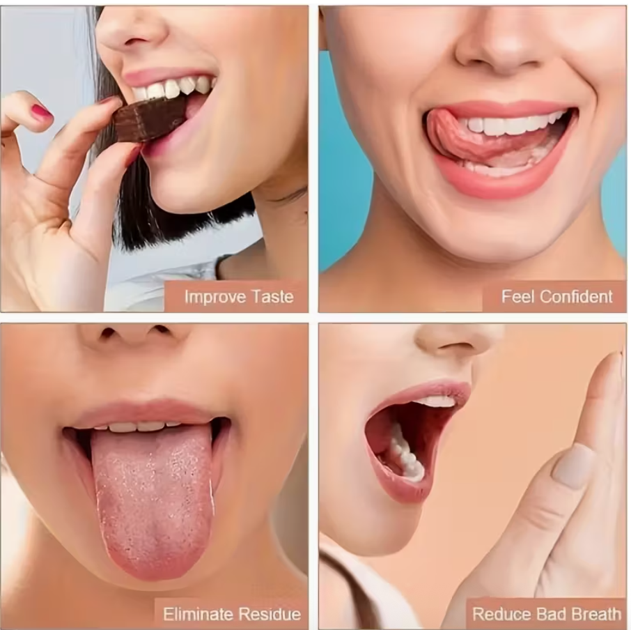 Removes bacteria, food debris, and white coating from the tongue surface—helping to reduce bad breath and improve overall oral cleanliness.