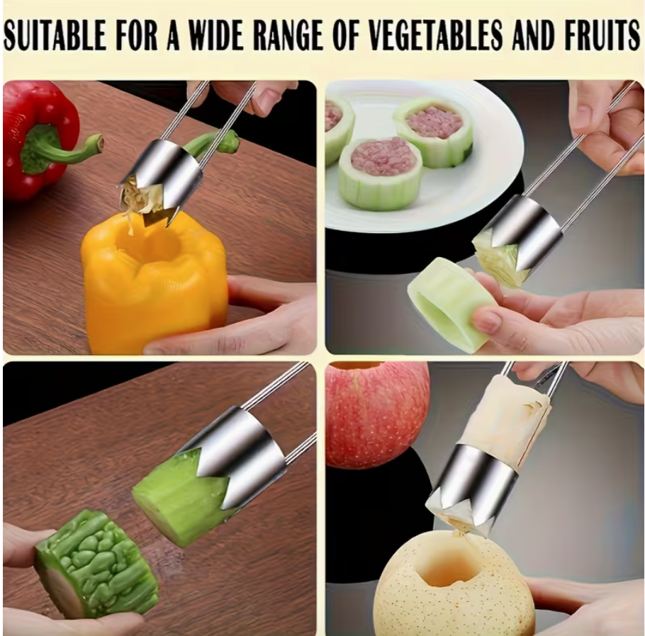 Make food prep faster, cleaner, and more enjoyable with this stainless steel fruit and vegetable core remover, a versatile kitchen tool designed to effortlessly remove cores and seeds from a variety of produce. Whether you’re preparing apples, pears, tomatoes, bell peppers, or other fruits and vegetables, this handy gadget helps you save time while achieving neat, professional results.