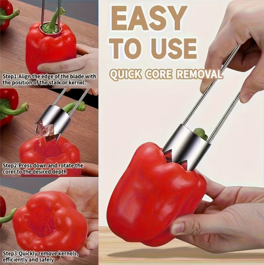 Stainless Steel Fruit & Vegetable Core Remover – Red Bell Pepper Seed Remover, Universal Kitchen Gadget