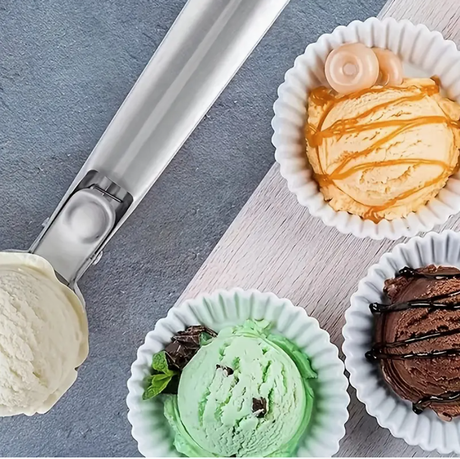 Scoop your favorite desserts and fruits with ease using this Stainless Steel Ice Cream and Fruit Scoop, designed for smooth performance and perfect round servings every time. Made from premium 430 food-grade stainless steel, this scoop is strong, rust-resistant, and built to last—making it a must-have tool for home kitchens, cafés, and dessert lovers.