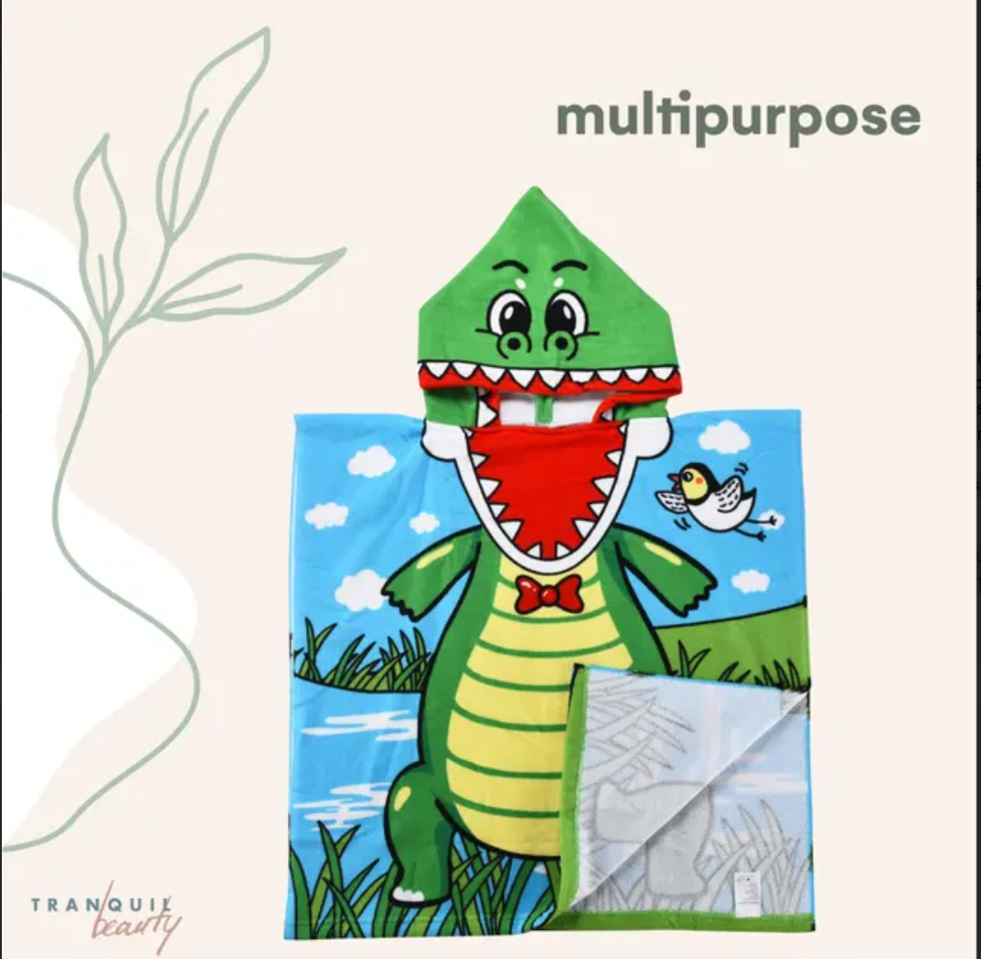 Introducing the TranquilBeauty Alligator Kids Beach Cover Up Swimming Towel – the ultimate accessory for your little one’s water adventures! Designed with a fun alligator print, this poncho-style, hooded towel transforms bath time, pool days, and beach outings into playful experiences. Here’s why it’s a must-have: