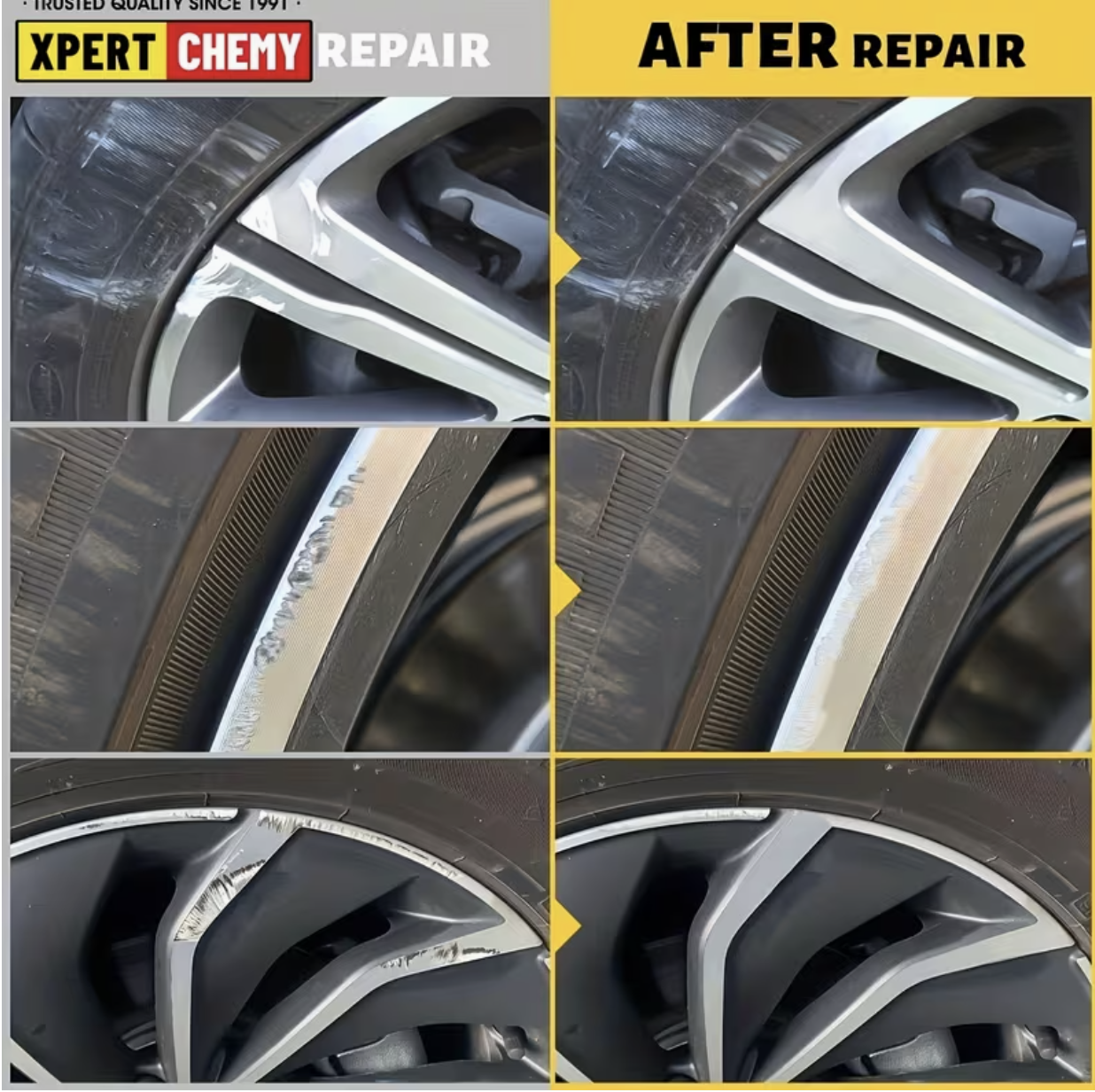 Restore your alloy wheels to their original sleek appearance with the Universal Alloy Wheel Repair Kit, specially designed for silvery and silver-finish wheels. This all-in-one repair solution helps you easily fix curb rash, scratches, scuffs, and minor rim damage at home—saving time and expensive workshop costs.