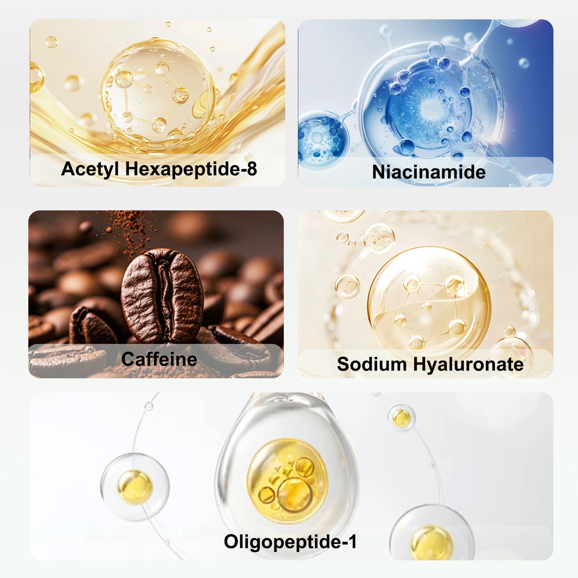 5% Caffeine – Known for its energizing and circulation-boosting properties to target puffiness and dark circles.