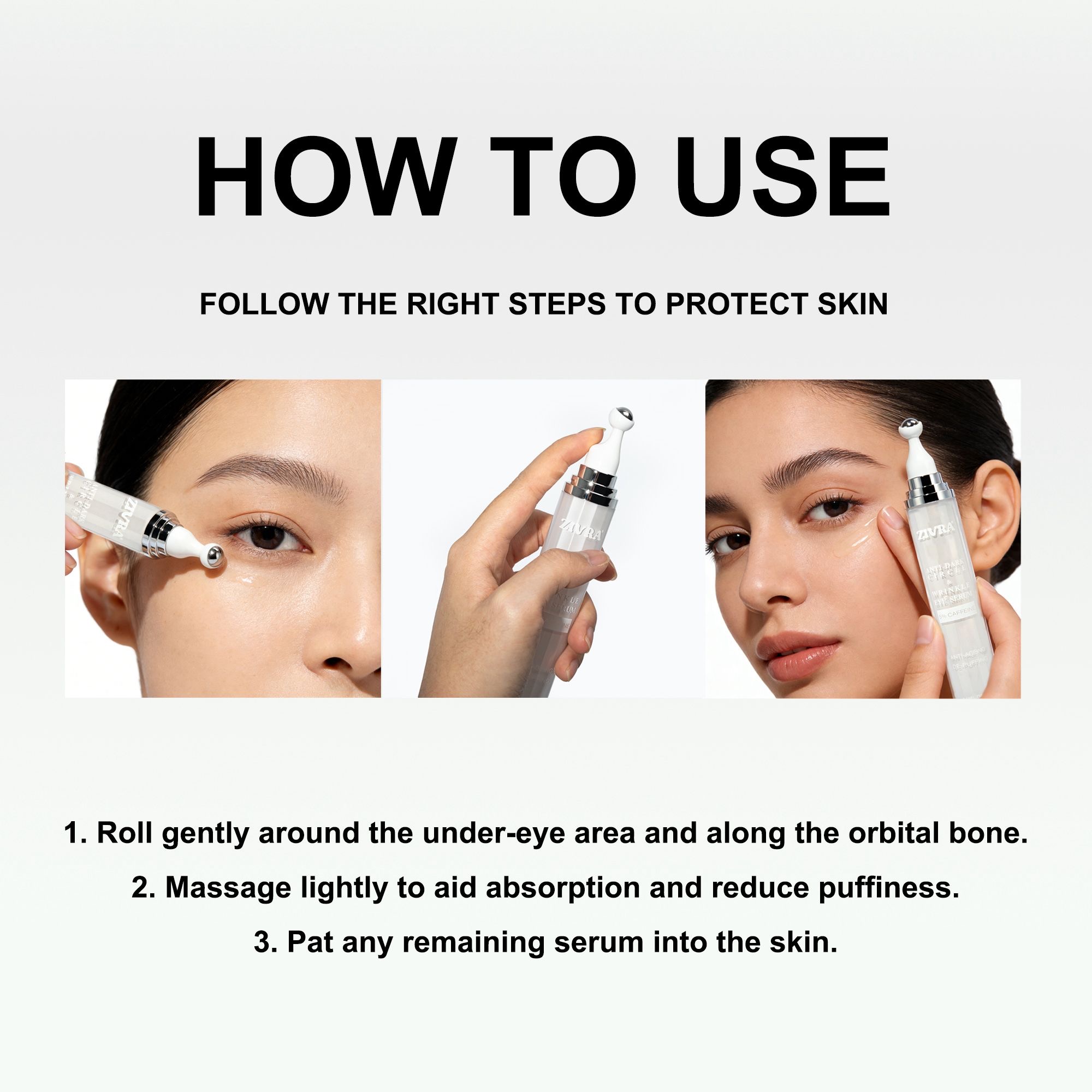 ZIVRA Anti Dark Circle Eye Serum – 5% Caffeine | Anti-Ageing & De-Puffing | 20ml | 360° Roller Applicator